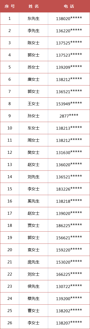 幸运参与者名单