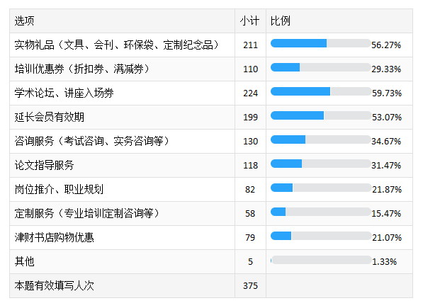 四是优化会员管理系统,拓展会员积分换礼功能。调查显示,会员对学术论坛、讲座入场券及实物礼品需求量较大(见下表)。