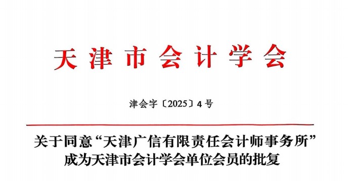 关于同意“天津广信有限责任会计师事务所”成为天津市会计学会单位会员的批复 关于同意“天津广信有限责任会计师事务所”成为天津市会计学会单位会员的批复 2025-01-08