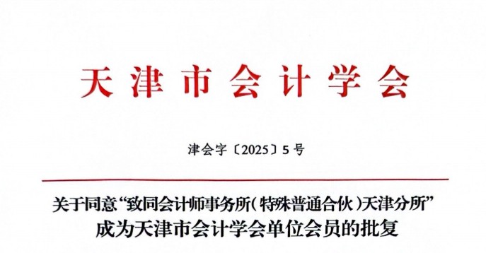 关于同意“致同会计师事务所(特殊普通合伙)天津分所”成为天津市会计学会单位会员的批复 关于同意“致同会计师事务所(特殊普通合伙)天津分所”成为天津市会计学会单位会员的批复 2025-01-08