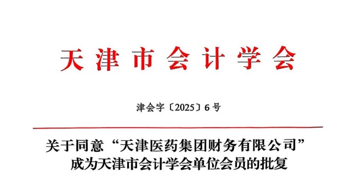 关于同意“天津医药集团财务有限公司”成为天津市会计学会单位会员的批复 关于同意“天津医药集团财务有限公司”成为天津市会计学会单位会员的批复 2025-01-09