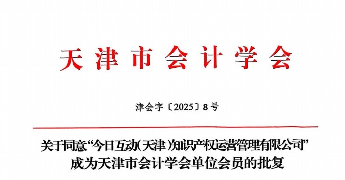 关于同意“今日互动(天津)知识产权运营管理有限公司”成为天津市会计学会单位会员的批复 关于同意“今日互动(天津)知识产权运营管理有限公司”成为天津市会计学会单位会员的批复 2025-01-09