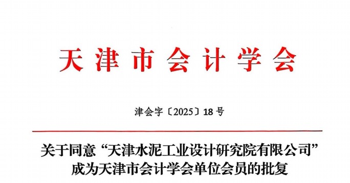 关于同意“天津水泥工业设计研究院有限公司”成为天津市会计学会单位会员的批复 关于同意“天津水泥工业设计研究院有限公司”成为天津市会计学会单位会员的批复 2025-02-21