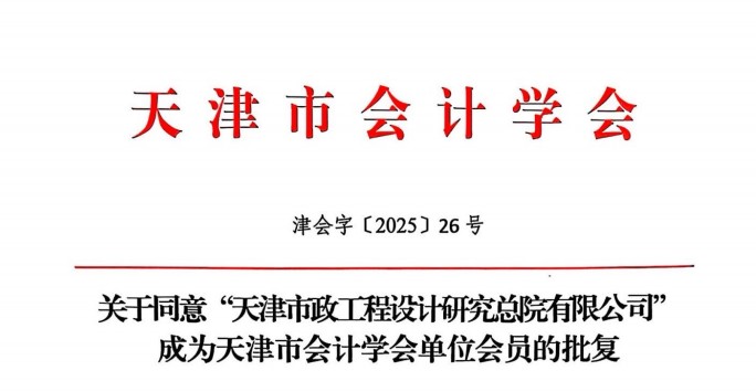 关于同意“天津市政工程设计研究总院有限公司”成为天津市会计学会单位会员的批复 关于同意“天津市政工程设计研究总院有限公司”成为天津市会计学会单位会员的批复 2025-04-08