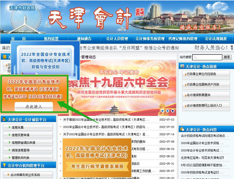 2022年全国会计专业技术初、高级资格考试(天津考区)准考证补打印(8月4日至6日开通)
