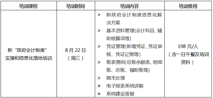 2015年以来,财政部相继出台了《政府会计准则》(基本+6项具体准则),及将于2019年1月1日起施行的 《政府会计制度——行政事业单位会计科目和报表》(财会〔2017〕25号)。随着实施日期的临近,为了确保新旧制度顺利衔接、平稳过渡,促进新制度的有效贯彻实施、顺利落地,天津市会计学会在开设“政府会计准则制度培训”的基础上与单位会员——用友政务软件有限公司合作举办新“政府会计制度”实操和信息化落地培训,充分保障新制度实施过程中的技术问题能得到有效解决,现将有关事项通知如下: