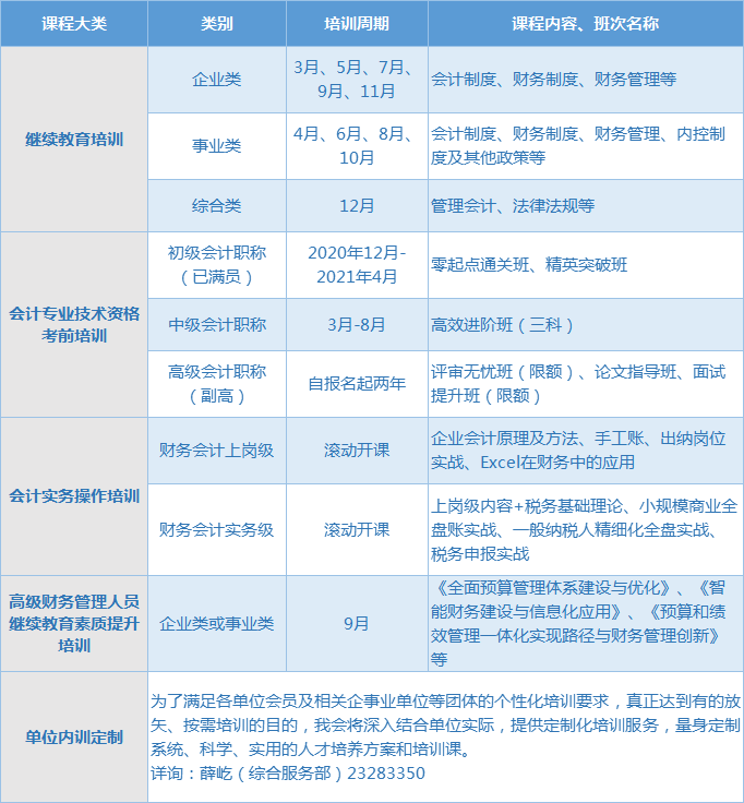 为持续提升我市会计人员继续教育质量,努力培养高素质财会人员,便于各单位及个人制定2021年度学习培训方案,我会发布《天津市会计学会2021年度培训计划》,供您选择。