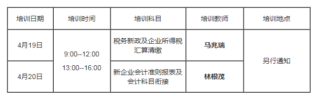 “税务新政及企业所得税汇算清缴、新企业会计准则及会计科目衔接”专题培训。